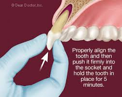 जर खेळताना असा काही दात अख्खा निघून आला आणि जर दात स्वच्छ असेल तर शक्यतो तो दात त्याच्या खोबणीत  परत बसवायचा असतो, त्याच्या मुळाला अजिबात स्पर्श न करता .
